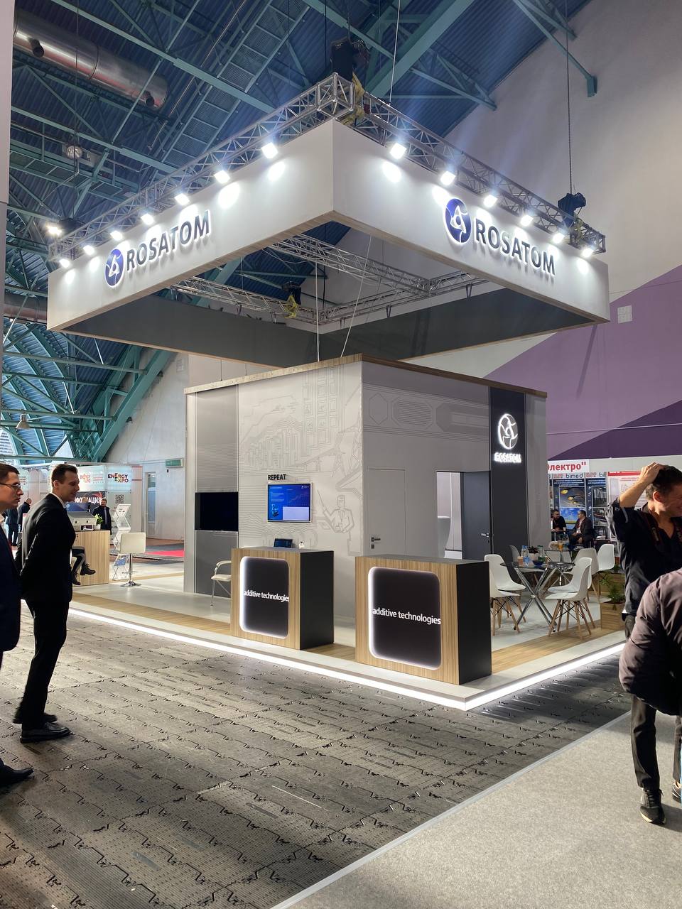 Конструкция легко масштабируется и может быть использована как компактный стенд, так и как полноценный выставочный павильон.